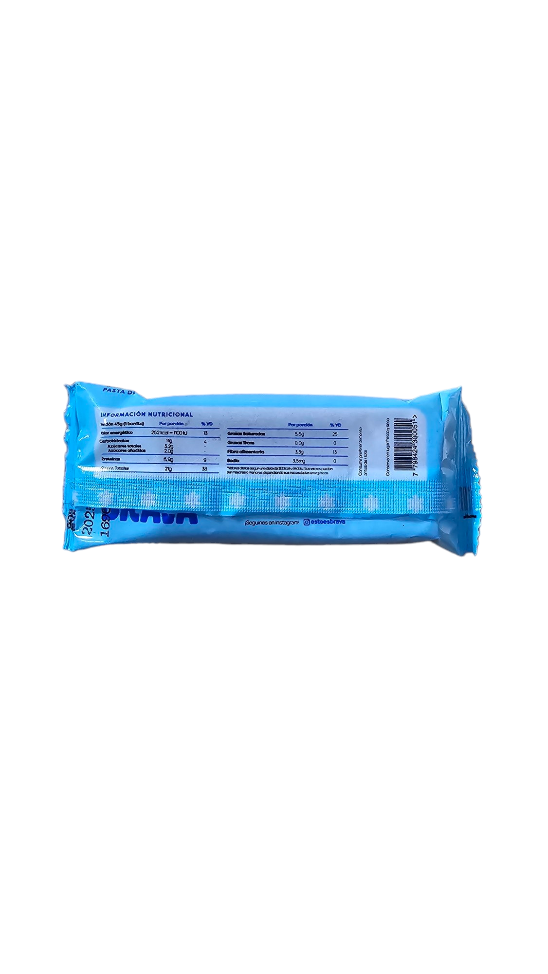 Cada barra está elaborada con almendras, maní sin sal, nueces, pasta de maní, chocolate cobertura semiamargo, coco rallado, crispin de arroz y semillas de girasol, ofreciendo una combinación única de sabores y texturas.