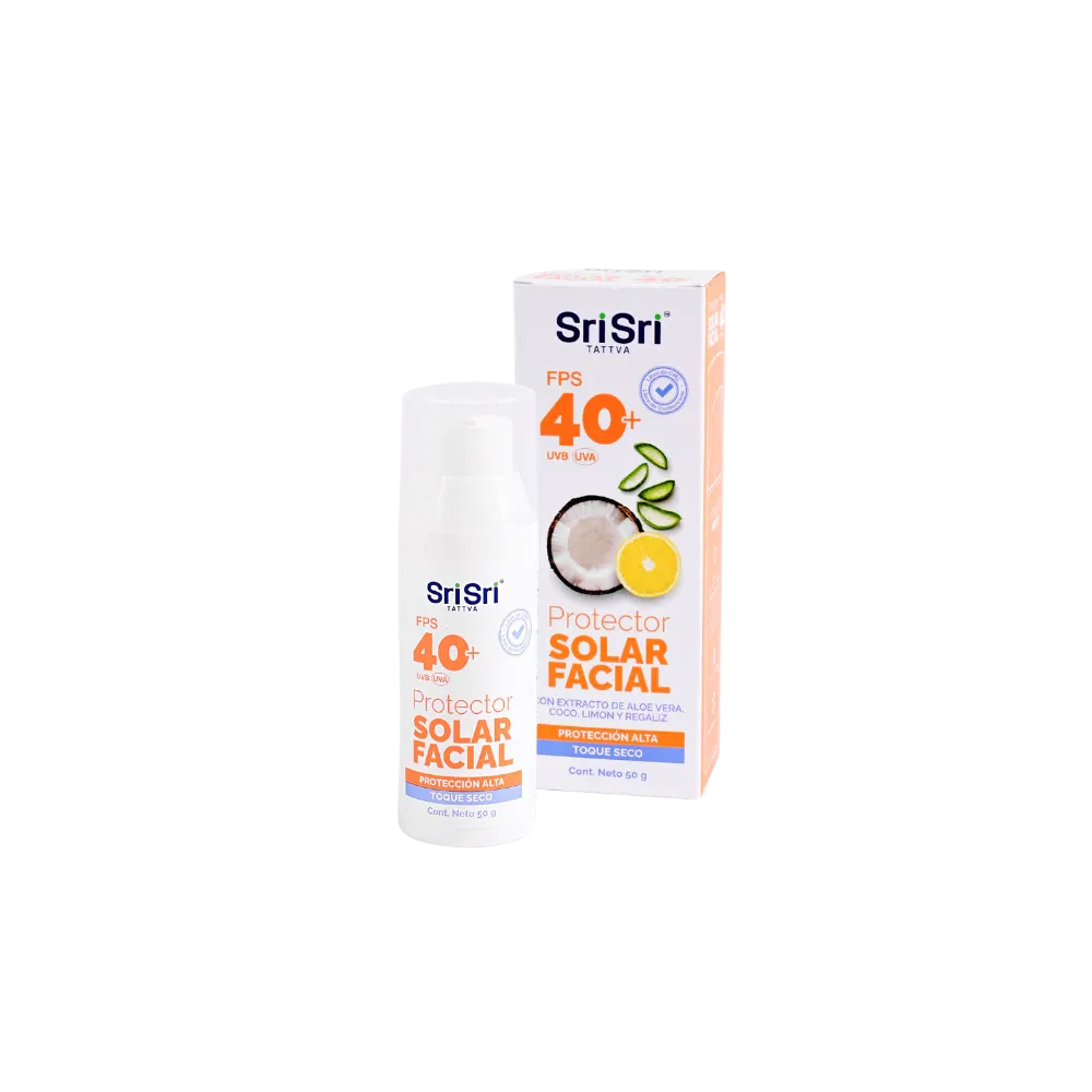 Una fórmula natural, equilibrada y efectiva para proteger tu piel del sol sin comprometer su bienestar. Este protector solar facial ayurvédico FPS 40+ brinda protección de amplio espectro frente a los rayos UVA y UVB, con una textura ligera, sin perfume y de acabado seco, ideal para uso diario.